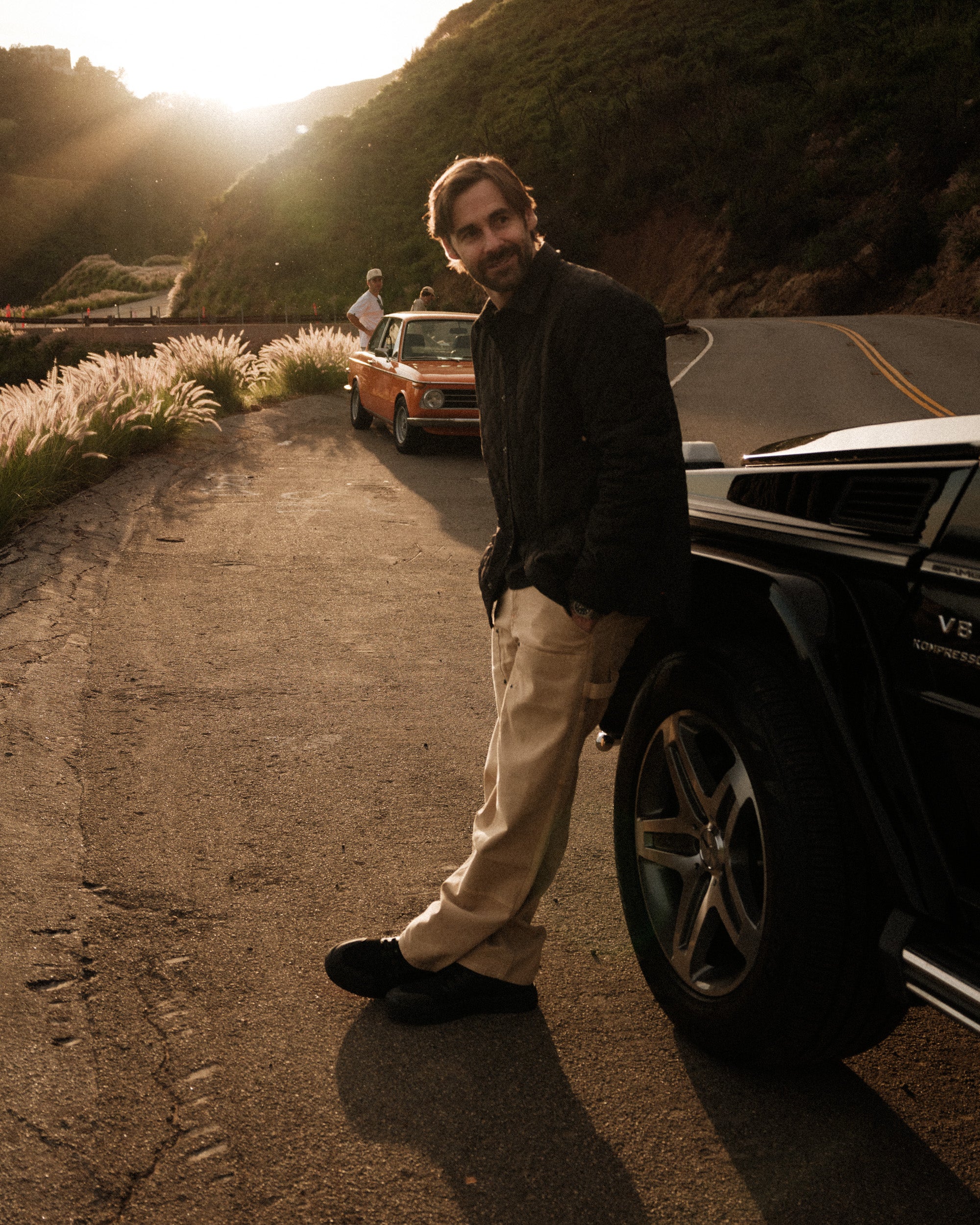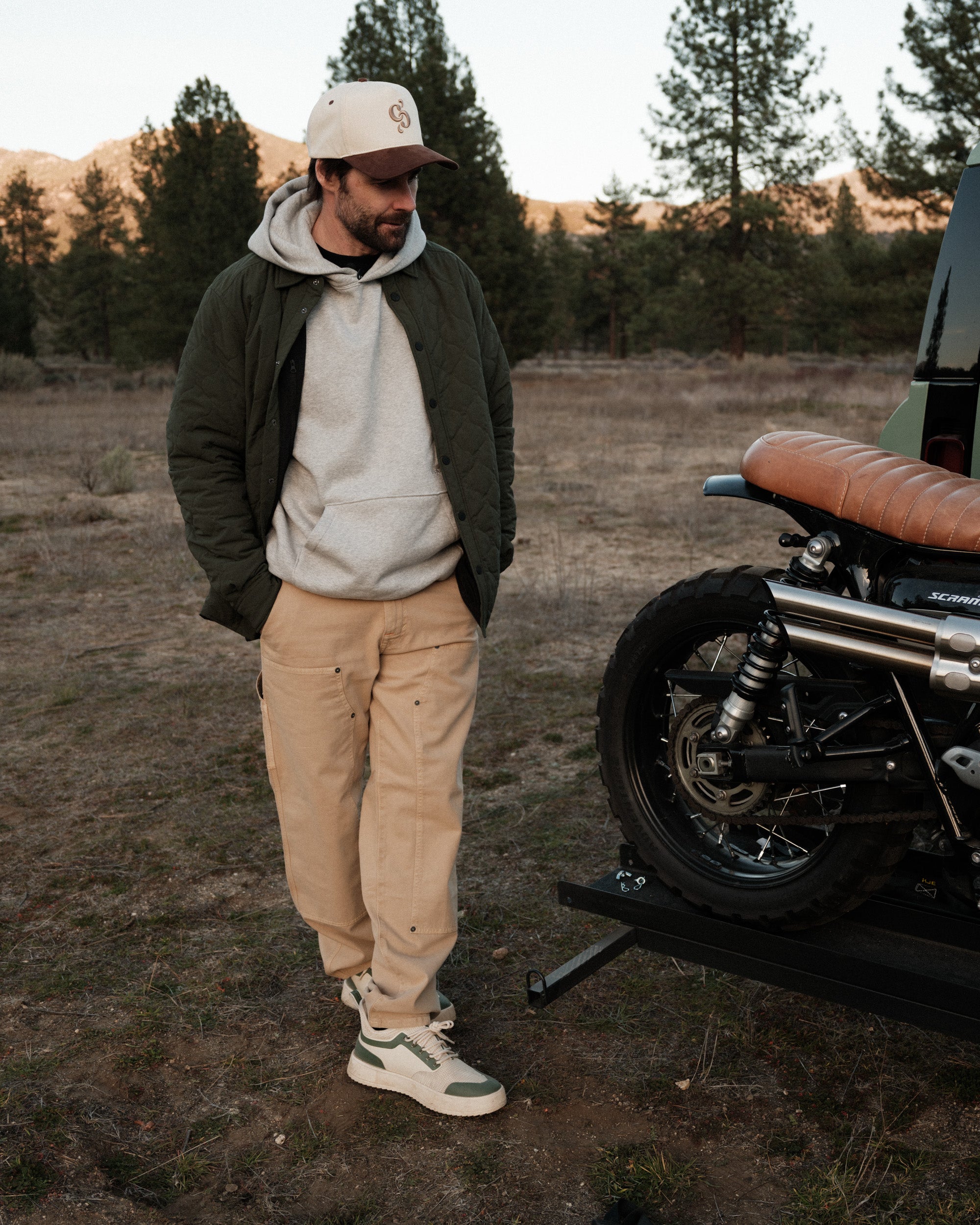 Our Carpenters have a straight leg that's on the longer side. Keep that in mind if you size up for a looser look.