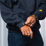 - Collab logo screen printed on chest + embroidered on left sleeve