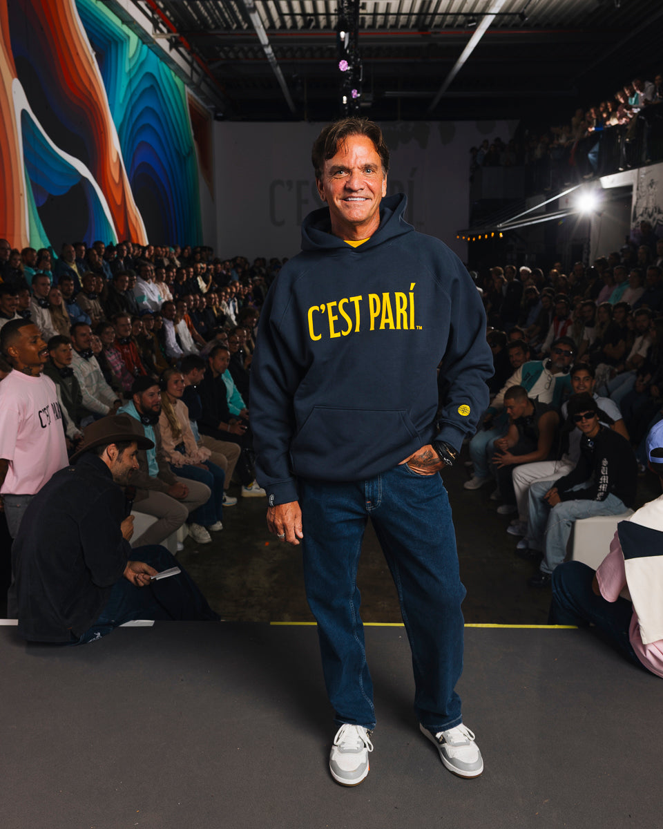 The best collabs = two originals + mutual admiration. This one is the perfect equation of bold PARÎ color and our effortless fits. Bonus hidden zip pocket inside kangaroo.