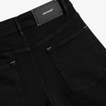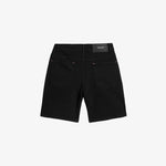 The Denim Shorts come in Jet Black and Light Blue. Both colors have our logo on the rivets, button and a rubber patch at the back waist.